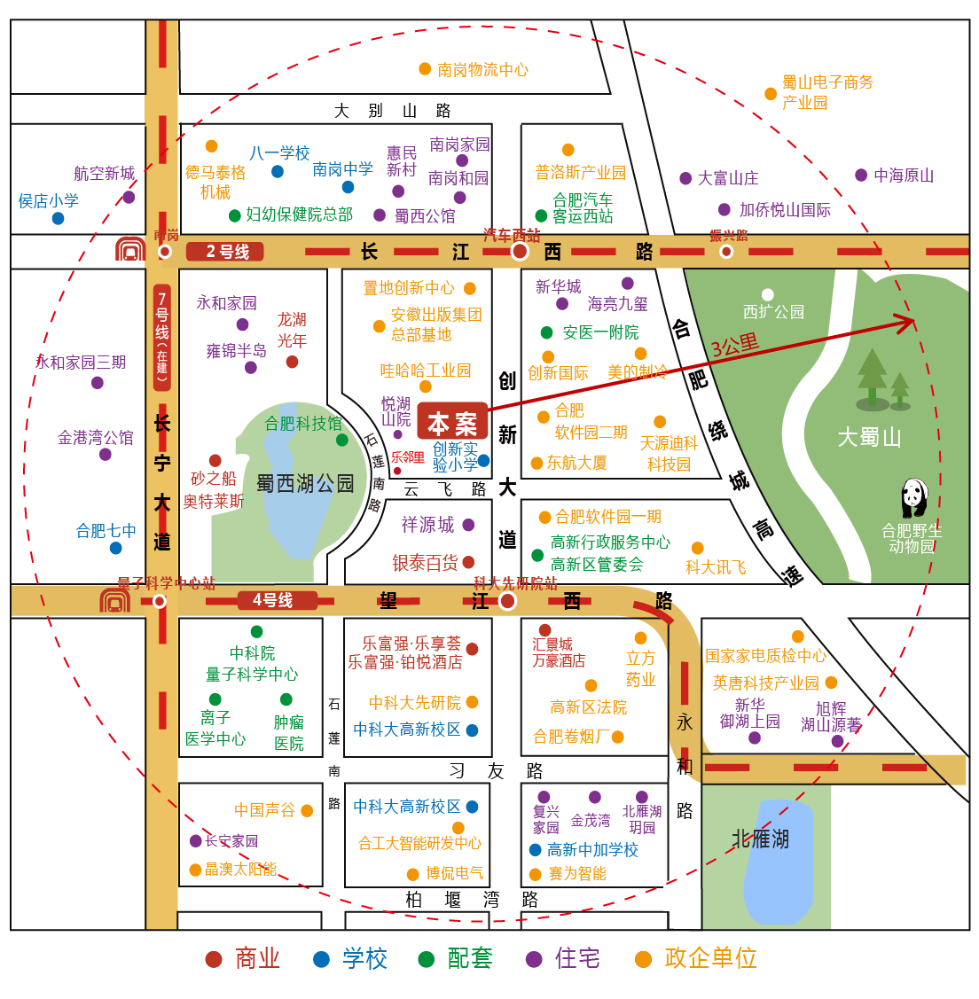 項(xiàng)目位于合肥高新區(qū)創(chuàng)新大道與云飛路交口北200米,屬于政府重點(diǎn)打造蜀西湖CBD板塊,坐擁一線(xiàn)湖景,地理位置優(yōu)越,交通便捷,辦公及住宅人口密集,政企/科研單位、學(xué)校、星級(jí)酒店、住宅等豐富配套環(huán)伺周邊,高知氛圍濃厚。