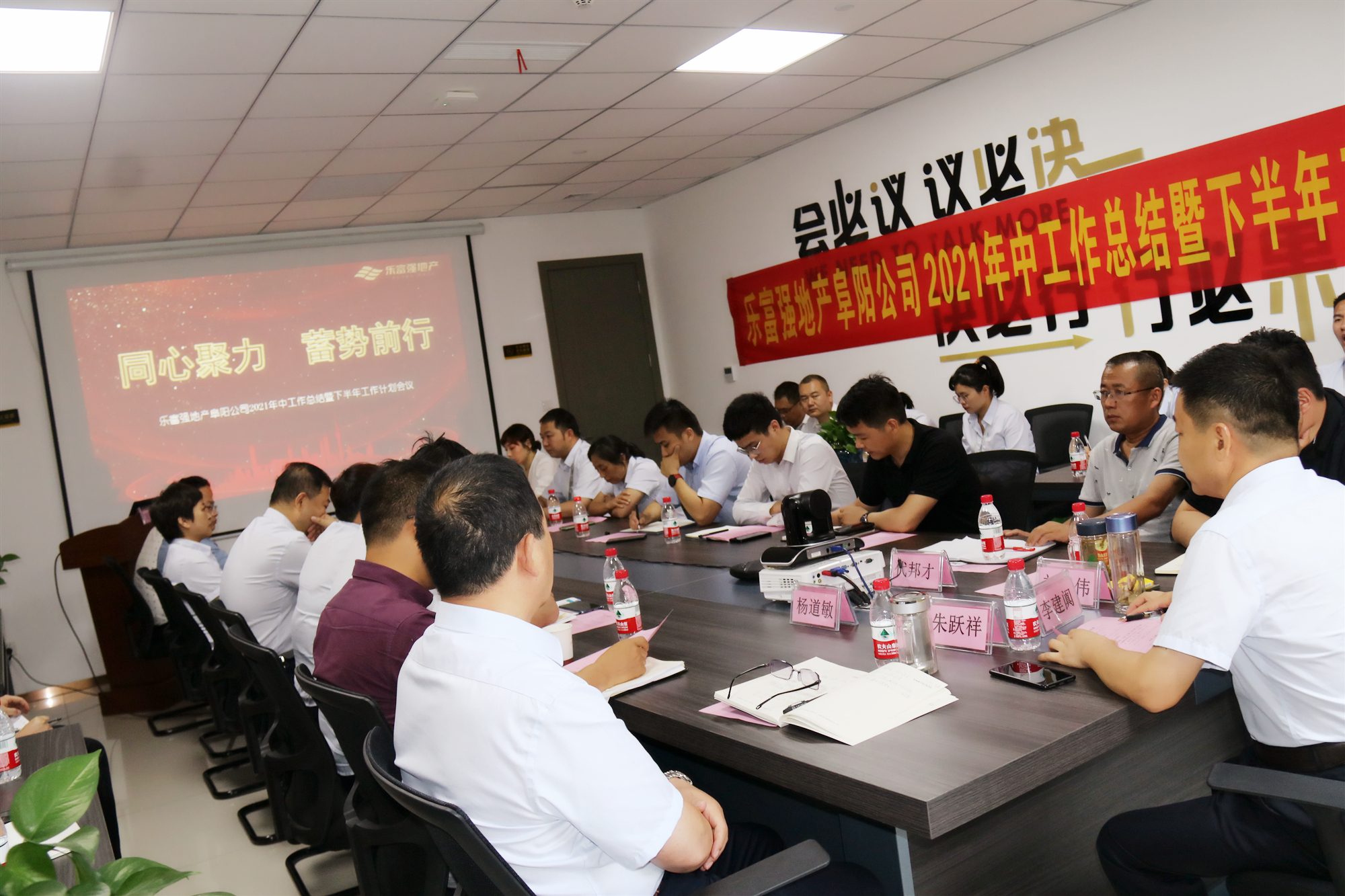 7月12日下午,以“同心聚力,蓄勢前行”為主題,樂富強地產阜陽公司2021年中工作會議在阜陽公司總部舉行,總經辦成員、主管級以上人員、項目銷冠出席會議,共同總結回顧上半年工作,謀劃部署奮進新篇章。