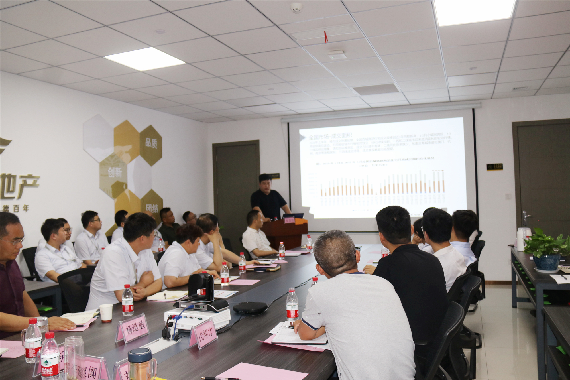 除工作總結匯報外,會上,營銷分管領導還作了《房地產市場情況研判及形勢思考》專題分享。從市場、土地、政策三大方面,解析當前房地產市場情況,并對當前市場形勢進行思考和研判:回歸本質,不忘初心,造“好房子” 才是房企的根本任務。具體要從四個方面抓好市場工作:一、扎實的基礎知識;二、敏銳的市場判斷;三、專業的團隊管理;四、堅定不移的信心。