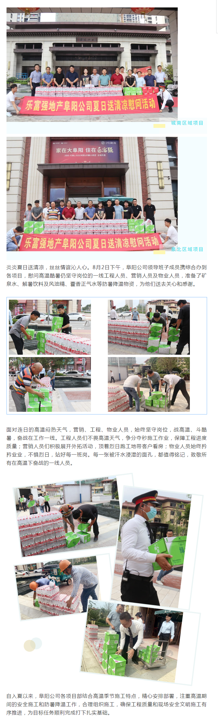 樂富強地產(chǎn)阜陽公司開展高溫慰問送清涼活動