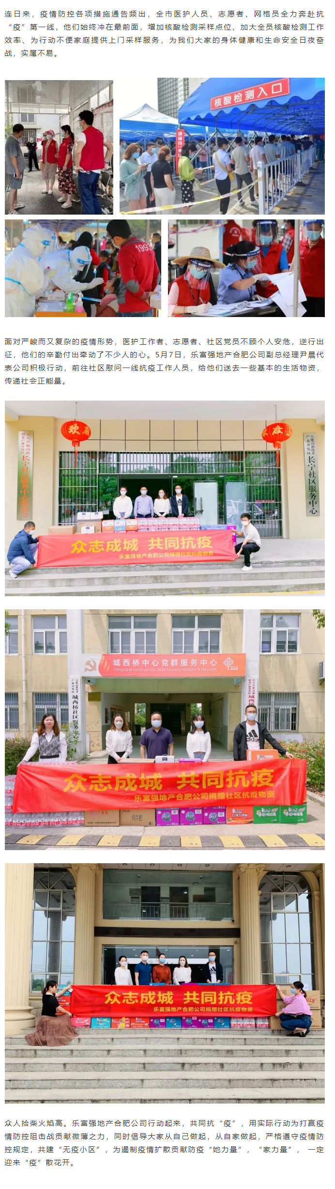 眾志成城,共同抗疫,樂富強地產(chǎn)合肥公司向社區(qū)捐贈抗疫物資
