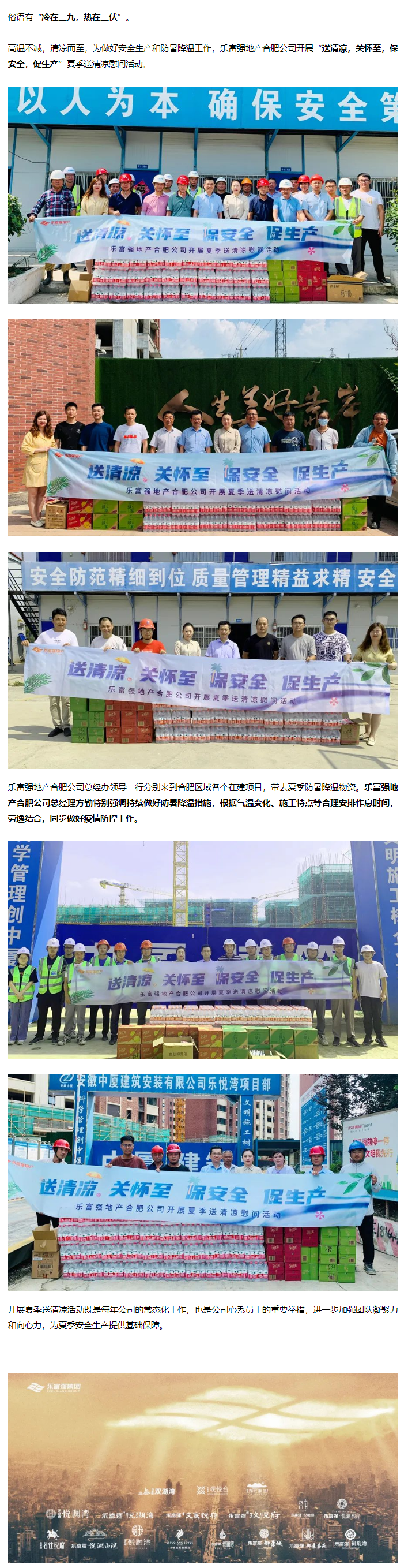 送清涼,關懷至,保安全,促生產,樂富強地產合肥公司開展夏季送清涼慰問活動